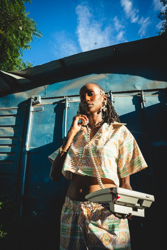 Geometry pattern cropped resort shirt